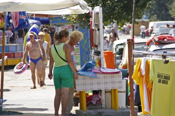 Turisti alegand suveniruri si amintiri din Eforie Sud